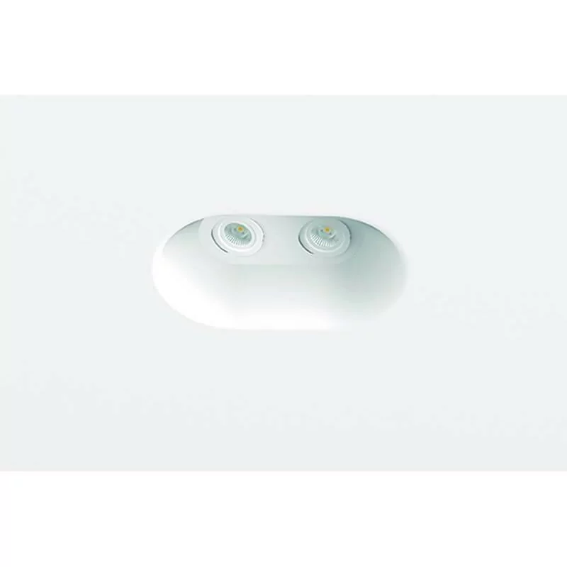 BPM Adhara Twins 10066 double, withdrawn 6cm binding gypsum with tilting to 45°. Lamp Spanish company BPM Lighting is designed for installation in plasterboard ceilings, made of Crismosilu, which is a special blend of plaster, resin, acrylic and fiberglass. Mounting of the fixtures is to cut an appropriate sized hole in the plate plasterboard, attached fittings, spackling joints of plasterboard and wymalowaniu entirety of any color. The luminaire is available in many versions: 12V, 230V and with an attached LED module or 2x10W 2x7W.