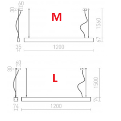 REDLUX PESANTE R12718, R12719, R12720, R12721 is a modern and elongated LED profile, suspended on 2 lines in black or anodized aluminum. The geometric-shaped lamp is available in 2 sizes to choose from. The light source used is a 40W LED with a warm light color of 3000K. This innovative fixture will work well in both private and commercial interiors. It can be installed in an office, restaurant, or living room.