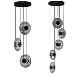 LUCES HUACARAJE LE44829/30, this elegant hanging lamp with three or five shades combines modern design with functionality. Made of metal and glass in shades of black and gray, it fits perfectly into minimalist interiors. Lampshades with a diameter of 26 cm provide effective lighting. The lamp is available in two versions, offering energy-saving and warm light. Perfect for the dining room, living room or office, it creates a cozy atmosphere.