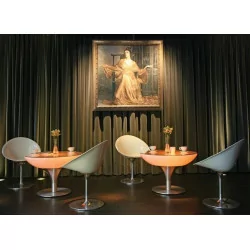 Lounge LED Pro is a modern illuminated tables renowned German company Moree . Tables of varying heights are made of anodized, brushed aluminum and translucent, shiny plastic. With its different heights have a wide range of applications. The highest - about a comfortable height 105cm - ideally suited for parties or cocktail party. The average 75cm can serve as a table in the dining room or living room. With the backlight does not require the use of additional lighting eg. In the form of candles. Lowest tables with a height of 45cm and 55cm are especially good with sofas and armchairs. Tables are equipped with the transparent power cables with a length of 2,5-3m. LEDs are illuminated multicolour power of 13W for changing the color of light. The set includes an infrared remote control, which has 6 light programs. Tables are intended for use inside buildings. Perfect for both private homes and pubs, hotels and restaurants.