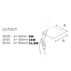 ALDAIA BPM 20120, 20121, 20122 LED 9W, 16W, 32W is a square, recessed LED luminaire Ceiling Spanish company BPM Lighting. It has withdrawn the light source, which is hidden behind a milky veil which ensures uniform lighting effect and the lack of visible specks. It is made of aluminum and finished in white. It is designed for installation in suspended ceilings, and as a light source it uses energy-efficient LED modules SHARP 3 powers to choose from: 9W, 16W or 32W. The sleek and modern design make this LED ceiling luminary is ideally suited to lighting offices, hotels, shops, restaurants, and a living room, bedroom, study, kitchen, hallway or routes. With class IP44 it can also be used in the bathrooms.