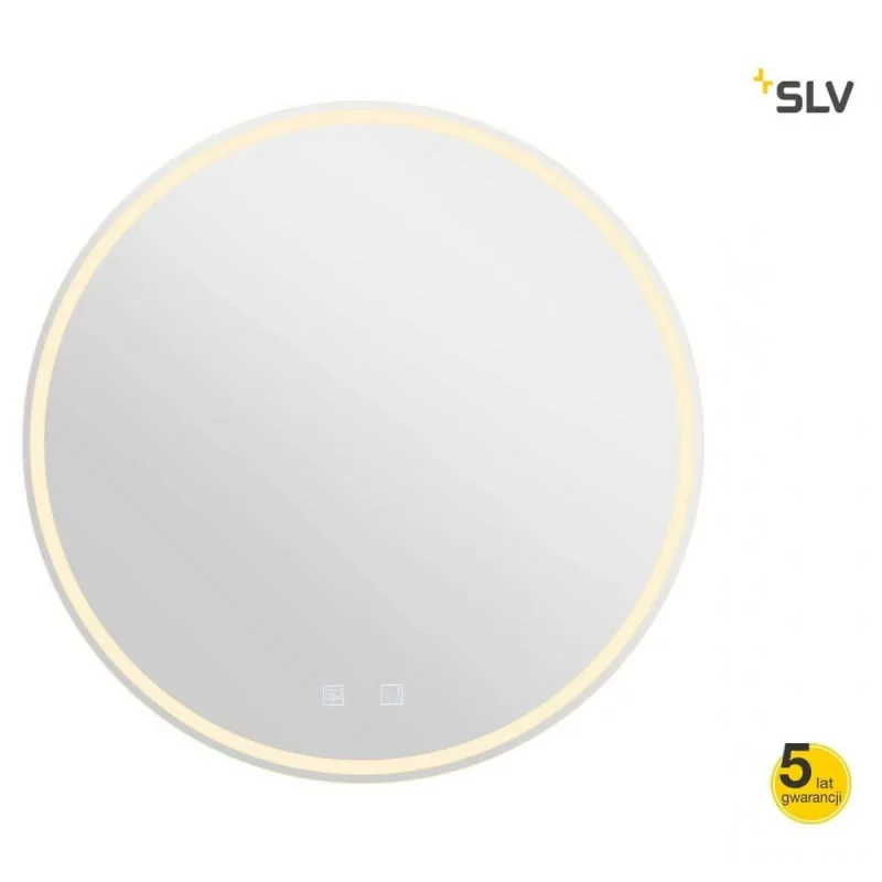 SLV TRUKKO WL 1004731 is a round LED with a diameter of 60 cm, intended, among others, for bathrooms (IP44 tightness class). Made of high-quality glass, it has an anti-fogging function and touch control with built-in buttons. Built-in LEDs with a total power of 25W with the ability to change the color of light: warm white 3000K, natural white 4000K or cold white 6500K. The mirror is 2.8 cm thick, weight 3.9 kg, and has a built-in 24V LED power supply. LED mirrors will look great in modern bathrooms, hairdressing salons, SPA salons, luxury hotels or in changing rooms in boutiques and shops.