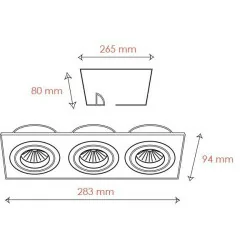 BPM MINI KATLI 3013 12V, 230V is a triple, rectangular ceiling luminary Spanish company BPM Lighting. Suitable for light sources MR16 (12V) or GU10 (230V) with a maximum power of 50W. It is made of plain aluminum and finished in brushed aluminum color. Contributions from bulbs are made of polished aluminum. It is designed for installation in suspended ceilings and recessed. It has moving points of light that allow any setting luminous flux. The sleek and modern design make this binding ceiling is ideal for lighting the kitchen, living room, bedroom, hallway or routes.