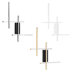 LUCES BILORTA LE45468/9/70 is a modern wall lamp with a geometric design that stands out for its unique, dynamic form. It consists of two sets of slim LED profiles that intersect at right angles, creating an asymmetrical composition. The lamp is set on a minimalist, black base, which gives it an elegant and contrasting look. Made of high-quality aluminum, steel and acrylic, it ensures durability and modern style.