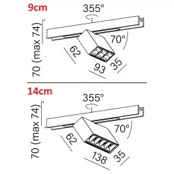Aqform RAFTER points LED multitrack 1641916341 oprawa LED pod szynoprzewód magnetyczny 48V. Dostępna w 2 długościach 9cm lub 14cm, wykonana z aluminium malowanego w kolorze: biały mat lub czarny mat. Modularnie ułożone soczewki w czarnym kolorze nadają oprawie eleganckiego wyglądu. Lampa posiada możliwość obracania wokół własnej osi oraz wychylenia do 70°, co pozwala skierować światło w dowolnym kierunku. Oprawa posiada zintegrowany LED o 3 barwach światła do wyboru: 2700K-3000K biała ciepła lub 4000K biała naturalna. Posiada dwa kąty świecenia do wyboru: 37° i 50° Dodatkowym atutem tej lampy jest wysoki współczynnik oddawania barw CRI 90. Oświetlenie szynowe magnetyczne idealnie pasuje do nowocześnie wykończonych wnętrz. Cały system gotowy do instalacji wyceniany jest pod konkretny wymiar, sposób podłączenia i ilość opraw po przesłaniu zapytania na email.