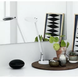 Artemide Demetra Micro TABLE LED 1747W10A, 1747W50A, 1747W20A nowoczesne, designerskie lampy biurkowe LED włoskiej firmy Artemide. Wykonana z aluminium i technopolymeru w 3 kolorach do wyboru: szary antracyt, czarny lub biały. Źródłem światła jest moduł LED o mocy 6W z ciepłą barwą światła 2700K lub 3000K z możliwością regulacji natężenia za pomocą mikro-włącznika. Dzięki możliwości regulacji ramienia i klosza światło można skierować w dowolne miejsce. Lampka stołowa dobrze sprawdzi się do nauki i pracy, a także w sypialni, gabinecie, salonie, czytelni itp.