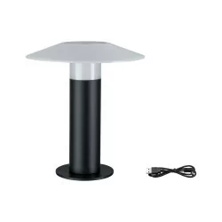 Paulmann Mobile Portino 942.06 to mobilna lampa zewnętrzna, zasilana baterią. Oprawa posiada osłonę, dzięki czemu świeci w dół ciepłym, białym światłem o mocy 3,5W. Bateria ładowana jest przez port USB, dlatego nie ma potrzeby posiadania w pobliżu gniazdka. I44 chroni lampę przed wodą. Pasuje na balkon lub do tarasu.