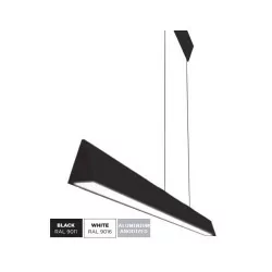 BPM ALZIRA 10169 to lampa wisząca LED z kloszem w kształcie trójkąta, wykonana z wyjątkowo nowoczesnego profilu aluminiowego przez hiszpańską firmę BPM Lighting. Lampy dostępne w 3 długościach do wyboru: 59cm, 89cm i 119cm oraz 2 wersjach mocy: słabszej i mocniejszej dla każdej długości. Wyposażone są w moduły LED firmy Tridonic o 2 barwach światła do wyboru: 3000K biała ciepła i 4000K biała neutralna. Lampa z korpusem o szerokości 4,7cm i wysokości 6,5cm z linkami o długości max 300cm dostępna jest w 3 kolorach do wyboru: biały, czarny oraz aluminium anodowane, co pozwala stworzyć lampę dopasowaną do własnych potrzeb i charakteru wnętrza. Lampy Alzira to designerskie lampy sufitowe, które będą doskonałym uzupełnieniem nowoczesnych wnętrz. Idealnie sprawdzą się w salonie, kuchni, sypialni, korytarzach, a także pomieszczeniach hotelowych, biurowych i komercyjnych. Lampa zawiera wbudowany zasilacz, mocowana na linkach o długości max 300cm.