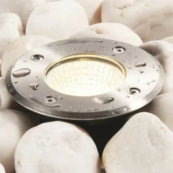 Wodoodporna lampa gruntowa LED o mocy 9W w kolorze polerowanej stali. Wykonana ze stali nierdzewnej, aluminium i szkła, posiada wbudowaną diodę LED w technologii COB, która dostępna jest w 2 barwach światła do wyboru: biała ciepła lub naturalna. Oprawa posiada zasilacz i puszkę montażową w komplecie, wykonana w wersji IP67, idealna na podjazd, wejście czy do oświetlenia ścian budynków.