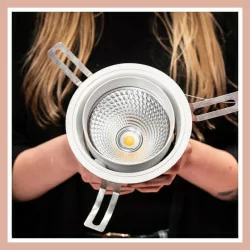 AQFORM LEDROUND move LED wpuszczany 38029 to oprawa idealna do oświetlania wystawa i ekspozycji. Wychylny reflektor, 3 kąty świecenia i zakres mocy 17-38W pozwolą oświetlić dowolny obiekt w sklepie i galerii podkreślając wygląd eksponatów przy niskim poborze prądu. Oprawa malowana na wybrany kolor w wersji matowej: biały, czarny, szary, miedź, złoty świecąc w 3 barwach światła do wyboru: biała ciepła 2700K i 3000K lub biała neutralna 4000K, jest wychylna w zakresie 30°, obracana wokół własnej osi o 350°, może być wykorzystana jako również jako oświetlenie główne w każdym wnętrzu!