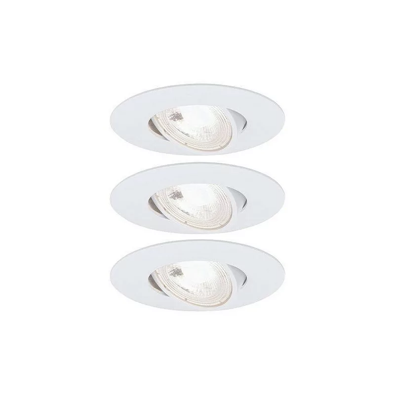 Zestaw 3 opraw LED do zabudowy niemieckiej firmy Paulmann. Prosty montaż i zasilanie 230V, niska wysokość oprawy co pozwala dopasować ją do każdego sufitu. Moc diody LED 5W i biała ciepła barwa światła.