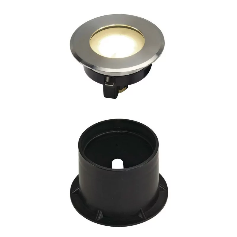 Nowoczesna oprawa wpuszczana SLV Dasar Flat 80 228412 wykonana ze stali nierdzewnej 304, aluminium i szkła. Wykazuje ona dobrą odporność na rdzę w warunkach naturalnych, jeśli nie odznaczają się dużą koncentracją chloru i soli. Nie jest przeznaczona do montażu w miejscach narażonych na działanie wody morskiej, zasolonej lub atmosfery o dużym stężeniu soli ani w basenach. Źródłem światła jest Moduł PowerLED o łącznej mocy 4,3W. Oprawa dostępna jest z 2 barwami światła: białą ciepłą lub białą naturalną. Przeznaczona jest do montażu w podłożu oraz ścianie. Doskonale sprawdzi się jako oświetlenie podłóg, schodów, ścieżek, podjazdów czy chodników.