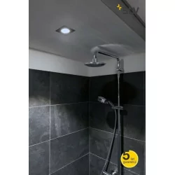 SLV PATTA-I kwadrat 1002101/2 kwadratowa oprawa sufitowa z diodą LED o wysokim współczynniku CRI>90. Wykonana z aluminium w 2 wersjach: biały, czarny, posiada wysoką klasę ochrony IP65. Źródłem światła jest moduł LED o mocy 7,3W emitując przy tym światło o barwie w zakresie 1800K-3000K. Barwa światła uzależniona jest od ściemniania, zmienia się na cieplejszą wraz ze zmniejszeniem natężenia. Oprawa posiada w zestawie zasilacz LED, jej klasyczny wygląd doskonale sprawdzi się w każdej łazience.